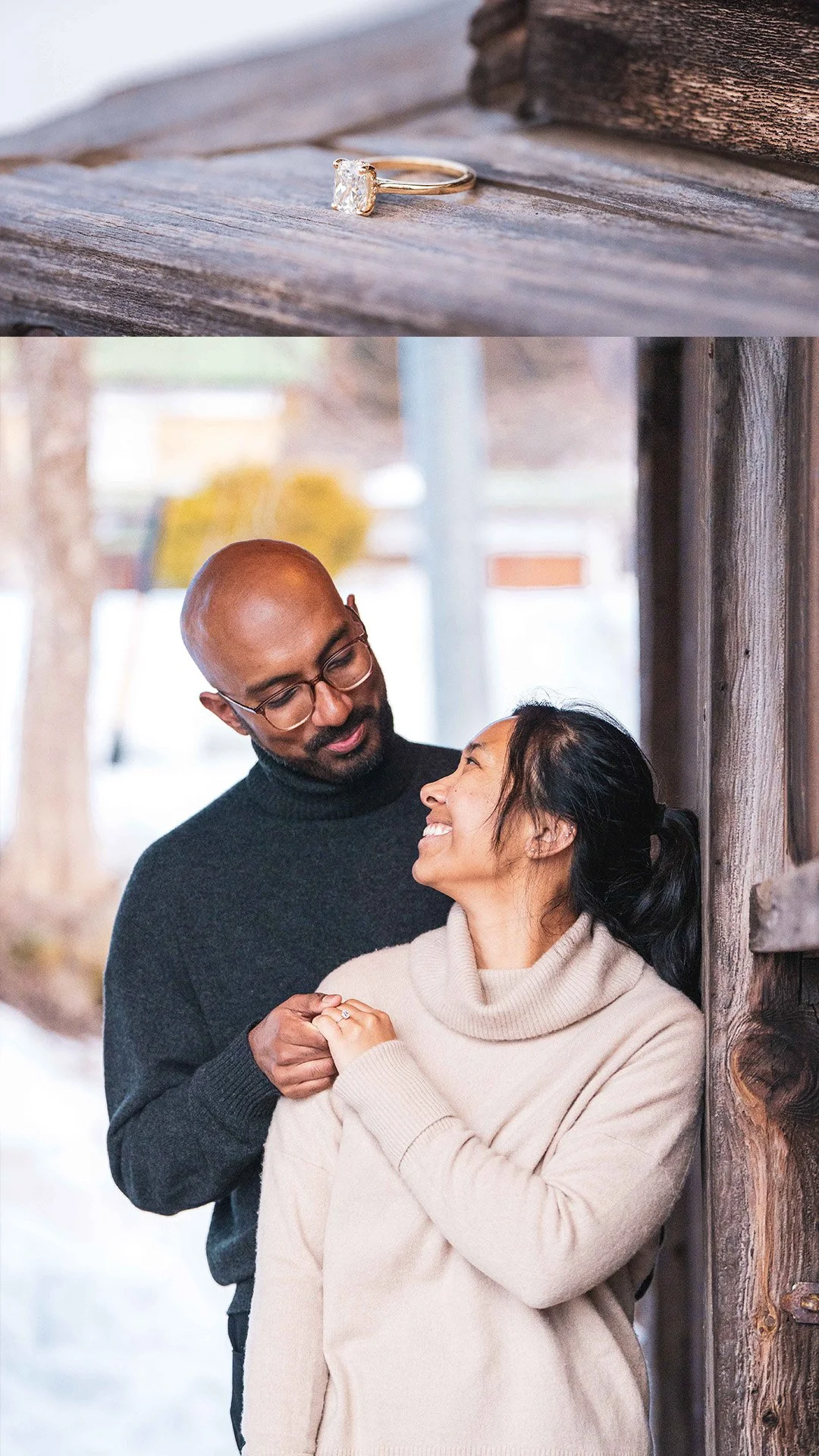 She thought it was just a casual winter walk and photo session — until he got down on one knee in the snow.